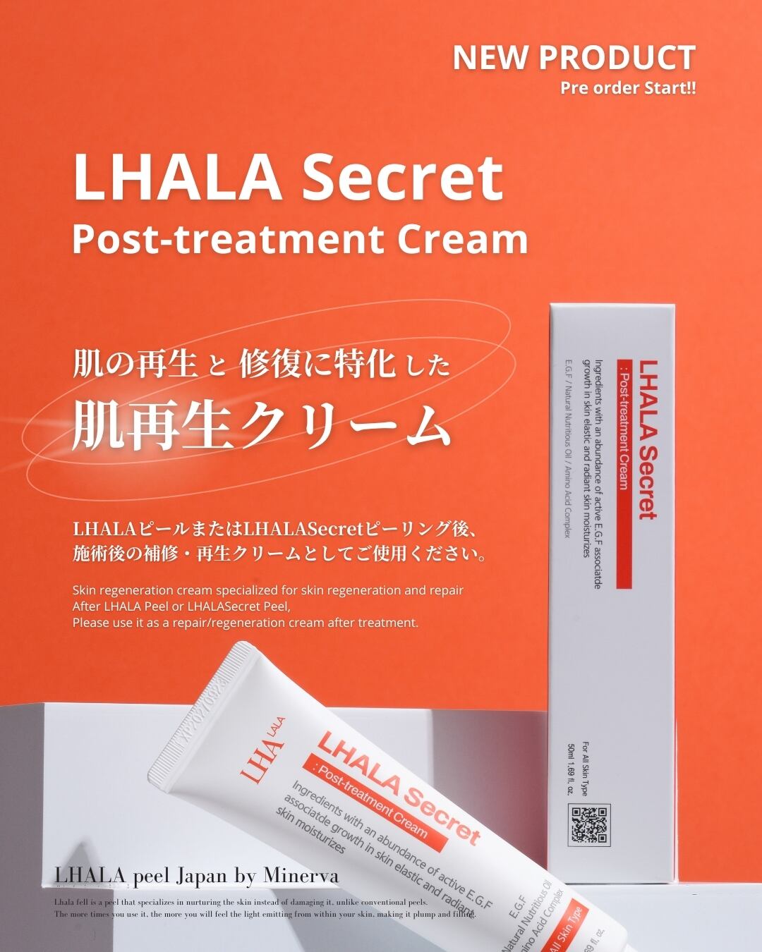 LHALAピールまたはLHALASecretピーリング後、施術後の補修・再生クリームとしてご使用ください。